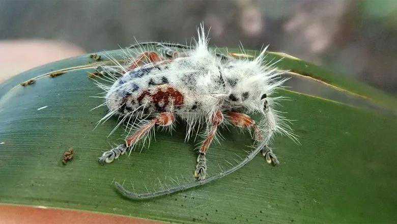 澳大利亚昆士兰大学的科学家在澳大利亚热带森林的金海岸进行探险时,发现了一种奇怪的长腿甲虫。这是一种以前未知的新物种——Excastraalbopilosa。科学家根据发现地点和外观选择了这个名字,其中Excastra在拉丁语中意为“来自营地”,而albopilosa意为“白色且多毛”。