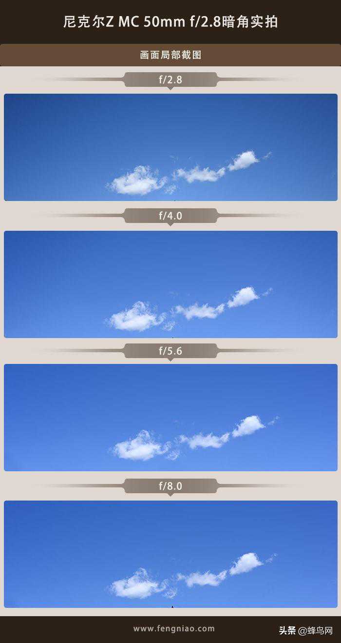 通过各档光圈下100%截图对比,很明显可以发现尼克尔ZMC50mmf/2.8镜头在最大光圈f/2.8下成像质量非常出色,收缩光圈后成像质量均一性良好,f/2.8-f/11时中央成像质量非常稳定,边缘成像质量的相似度也非常高,f/16时成像轻微下降,f/22下降就比较明显了。
