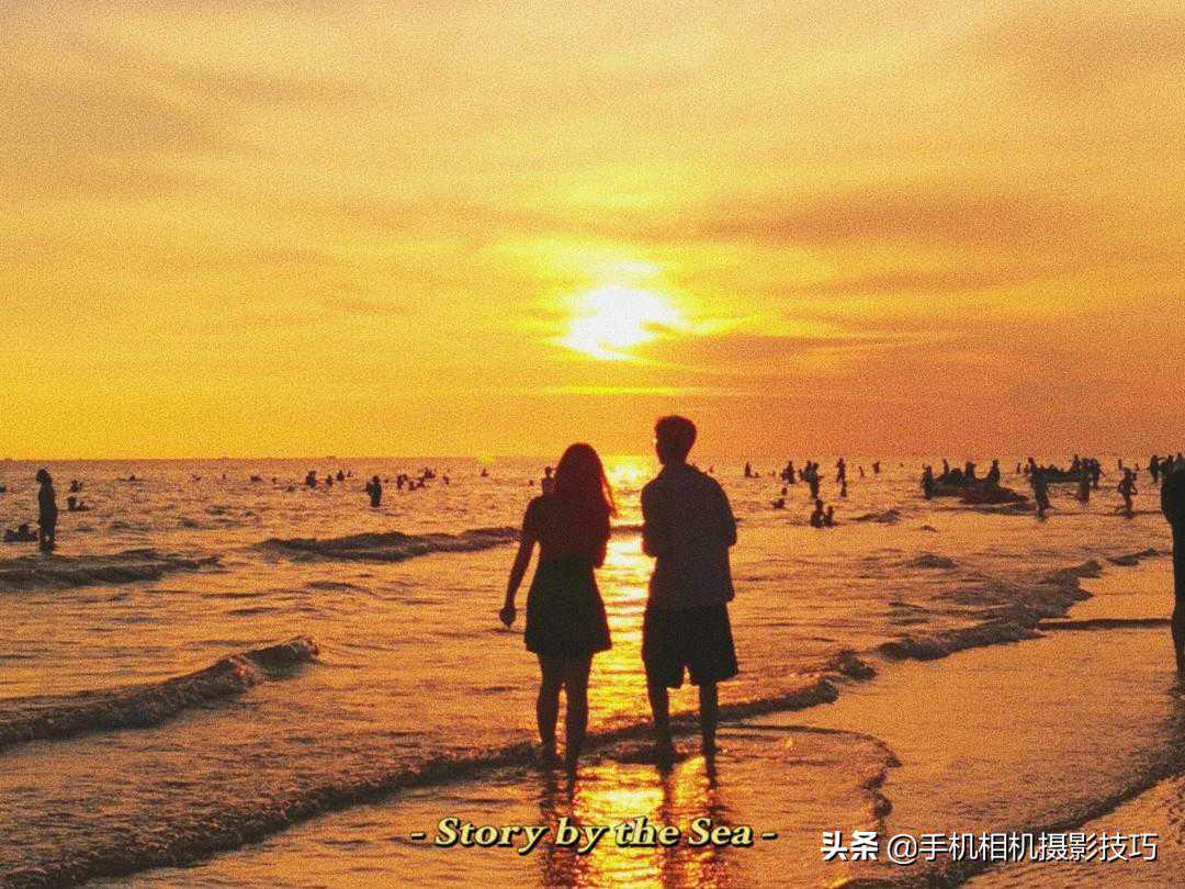 海边小情侣正好在夕阳下,很有感觉就拍了下来