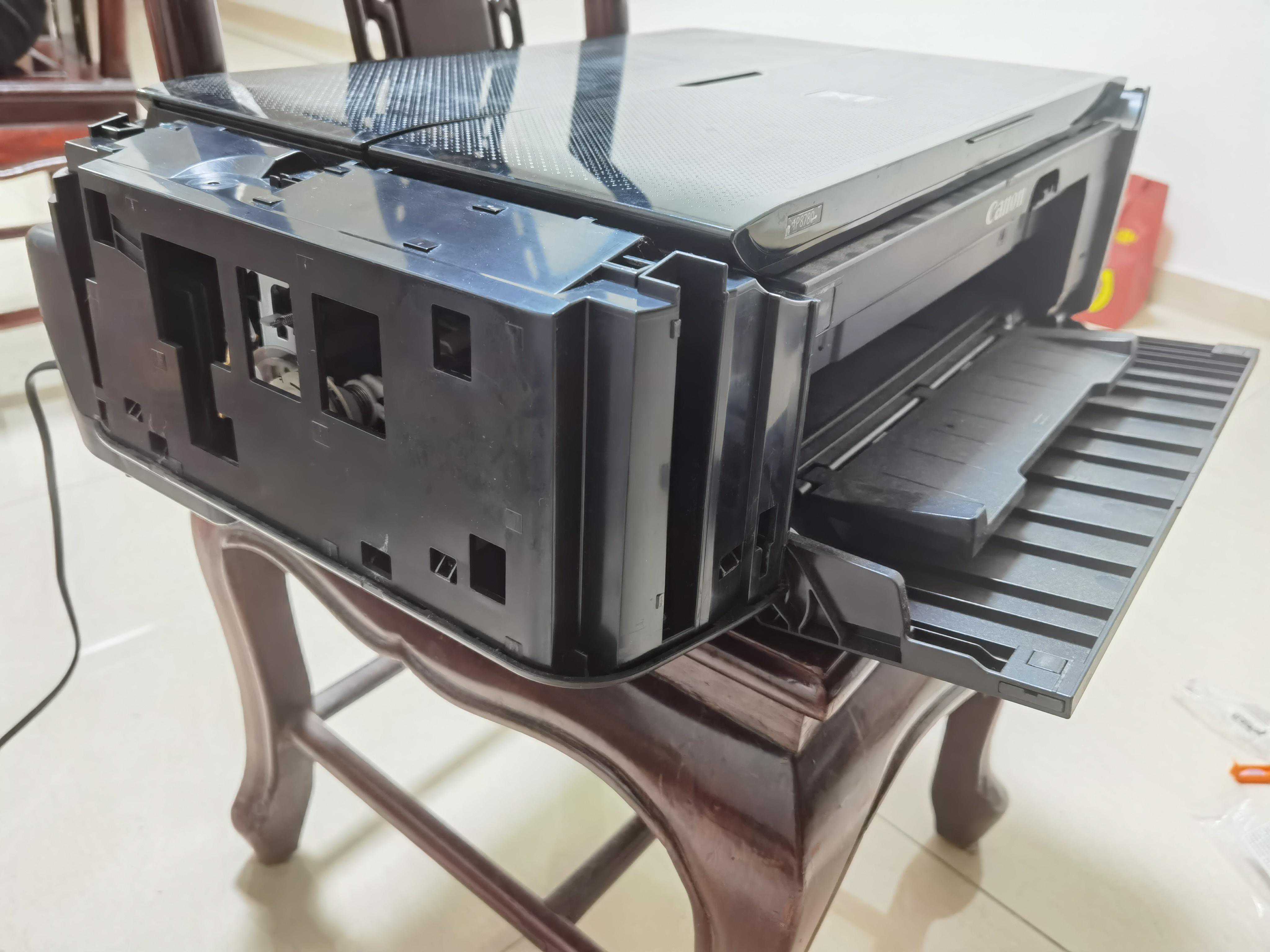 家里有台佳能ip8780打印机,闲置了两三年一直没用过,最近要打印点东西,于是让它重见天日,可意外的是,之前用得好好的机器居然无法正常开机了,插电按电源按钮,电源灯亮三下就灭了,跟没插电一样,墨车也没动静,试了各种姿势,确定是坏了。