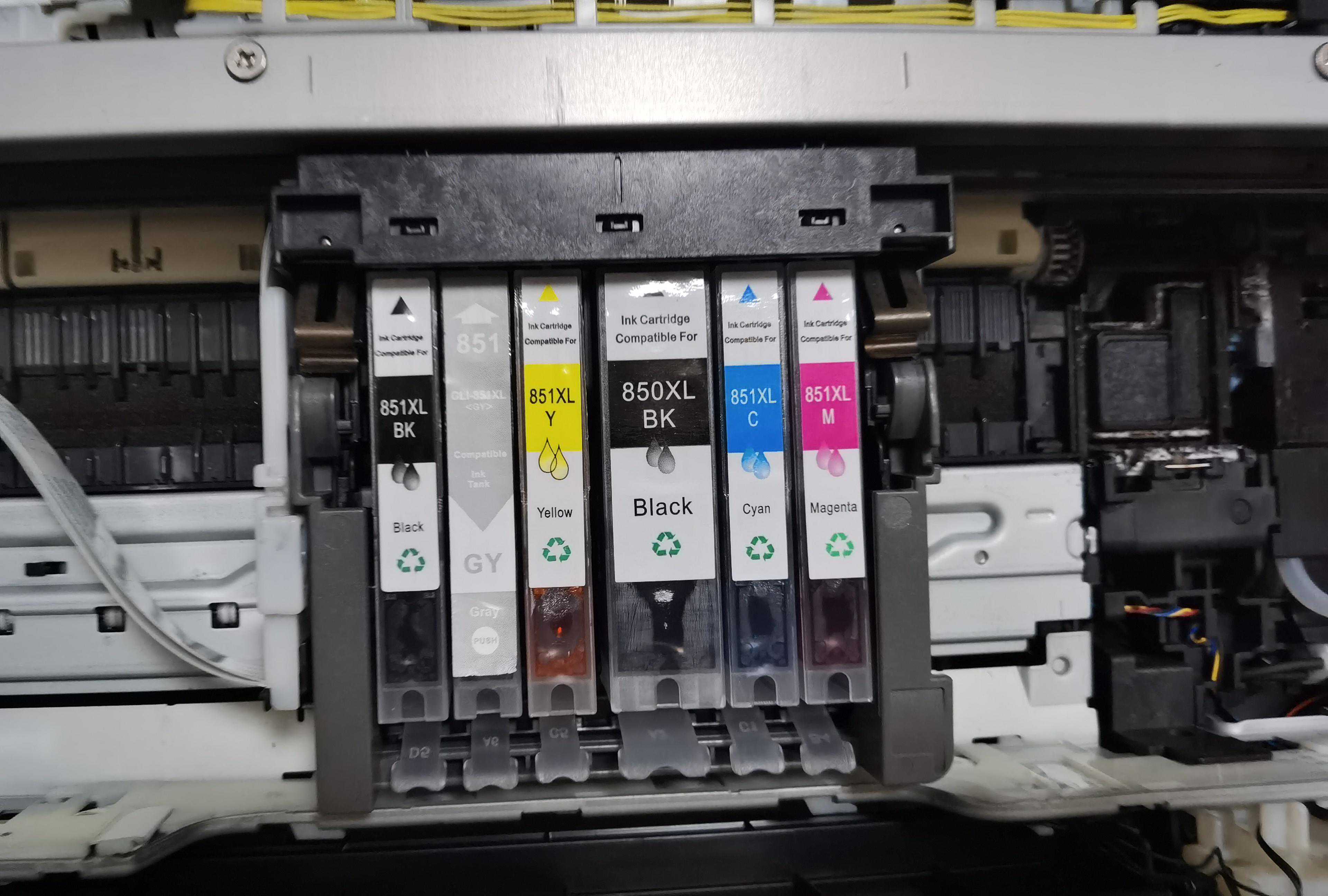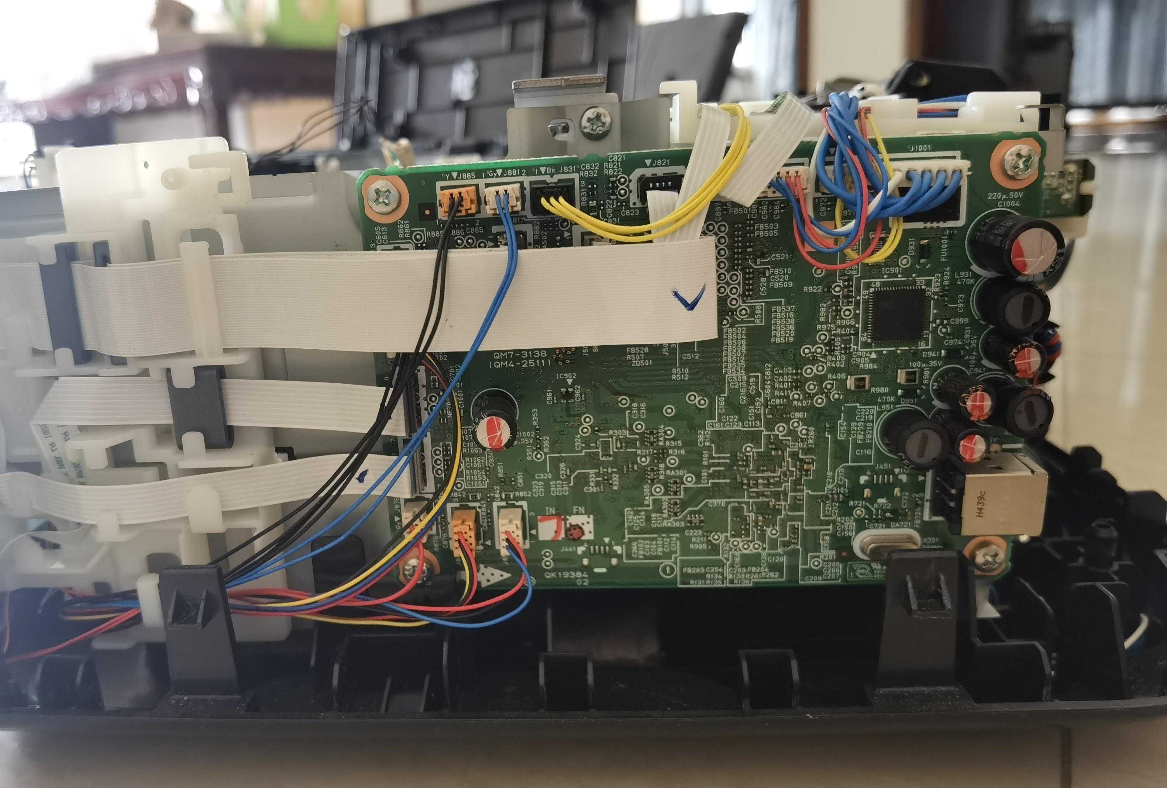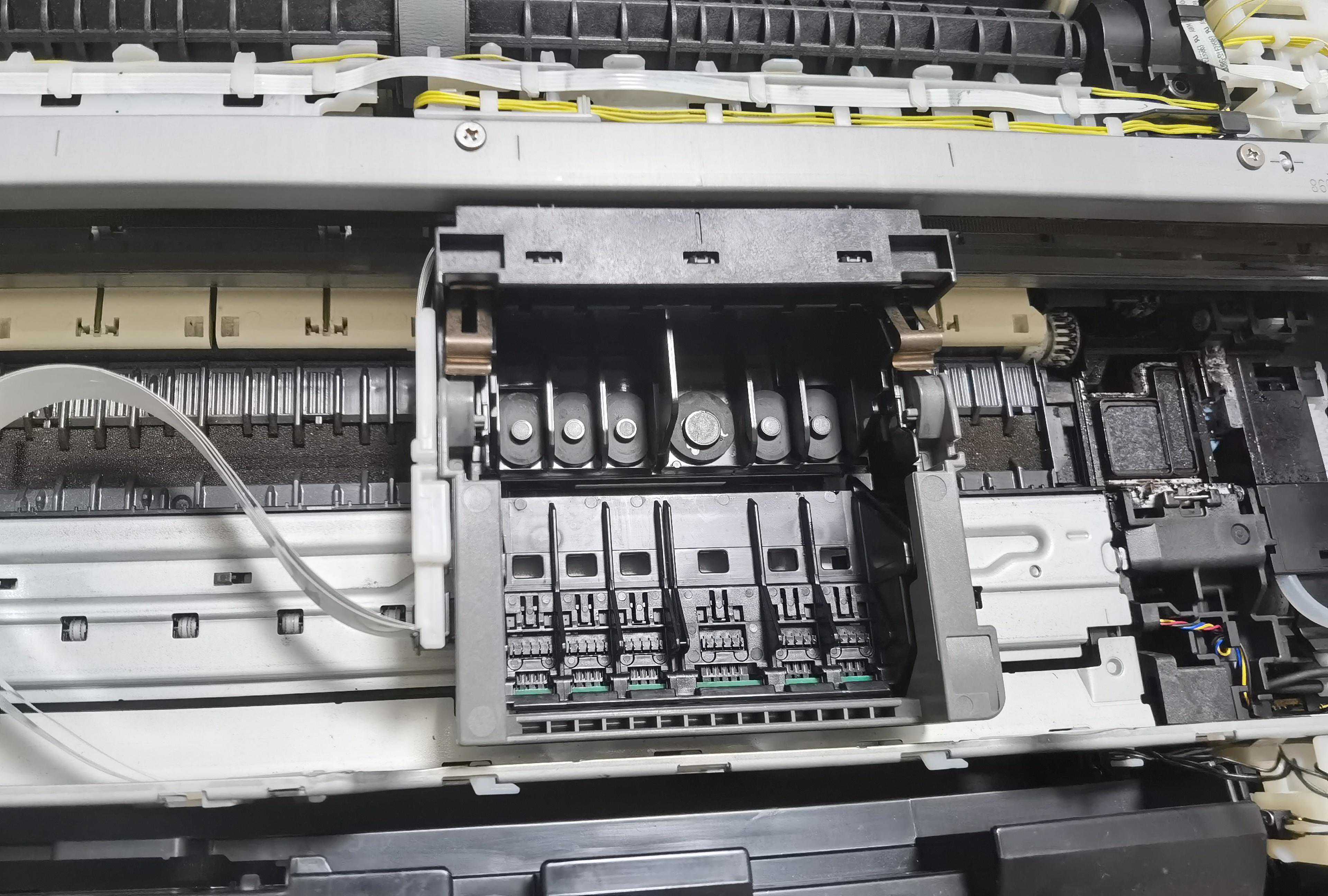 这次购买了主板一块,80元(拆机的);喷头一个,135元(因为闲置了几年,喷头估计也堵了,看了下价格也不贵,索性一起换了,说是全新原装的,虽然怀疑,但是跟卖家反复确认,卖家非常有信心,说绝对原装全新,那就试试呗);6个墨盒,35元(买得最便宜的,因为我对色彩要求不高,这次主要是要打一些文档,原装的太贵了)。总共花费250元,都是找的附近的商家买的,隔天配件就到了,然后开始毫无头绪地摸索。