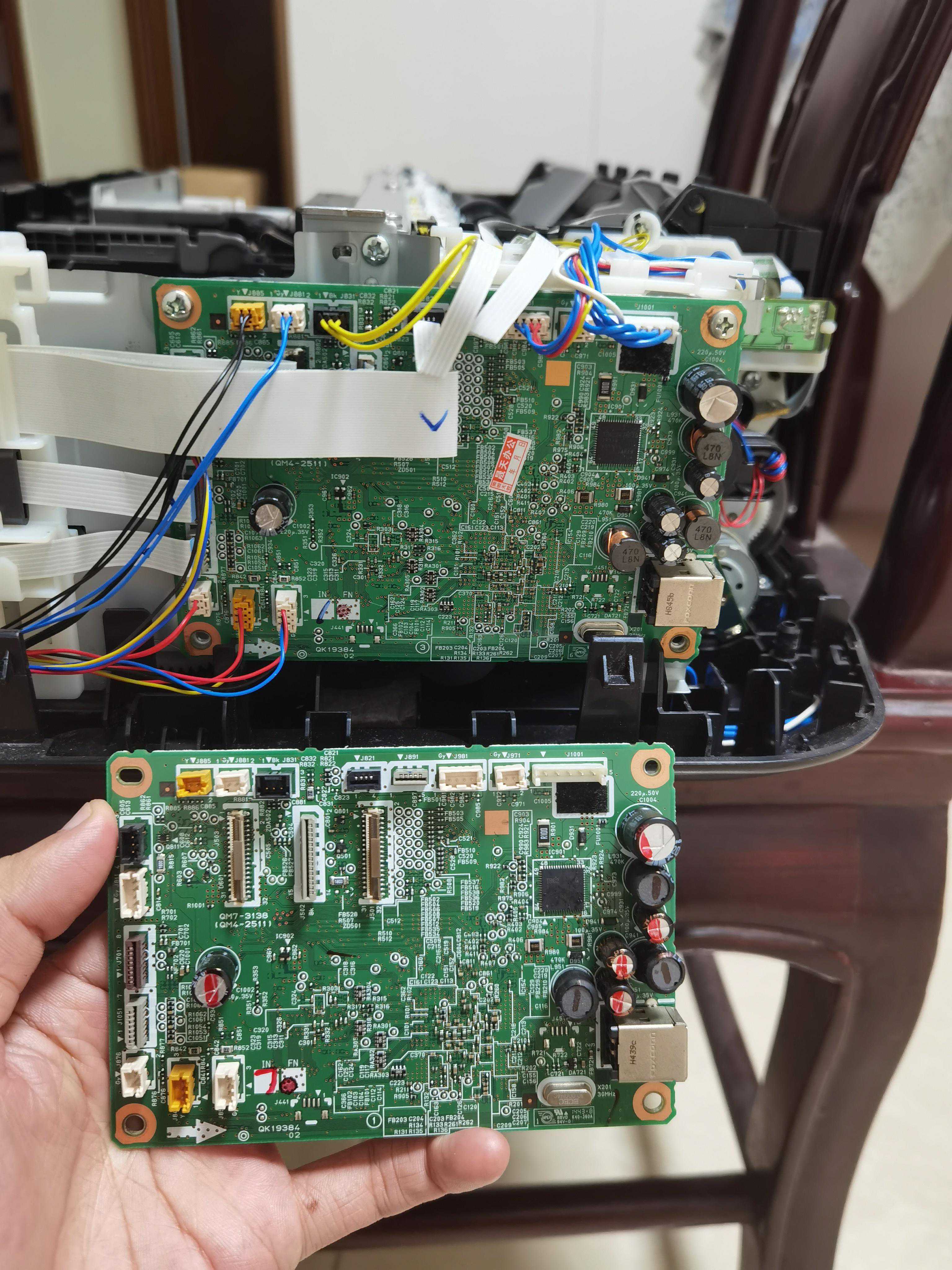 我从来没有拆过打印机,但在我的认知里,这种大众化的产品基本都是模块化的,哪里不行换哪里,像这样开不了机应该就是电源或者控制电路的问题,然而电源指示灯有时候会亮,说明电源应该没问题,于是在某宝搜了一下主板,发现才几十块钱,于是抱着试一试的心态,决定把配件买回来自己修。