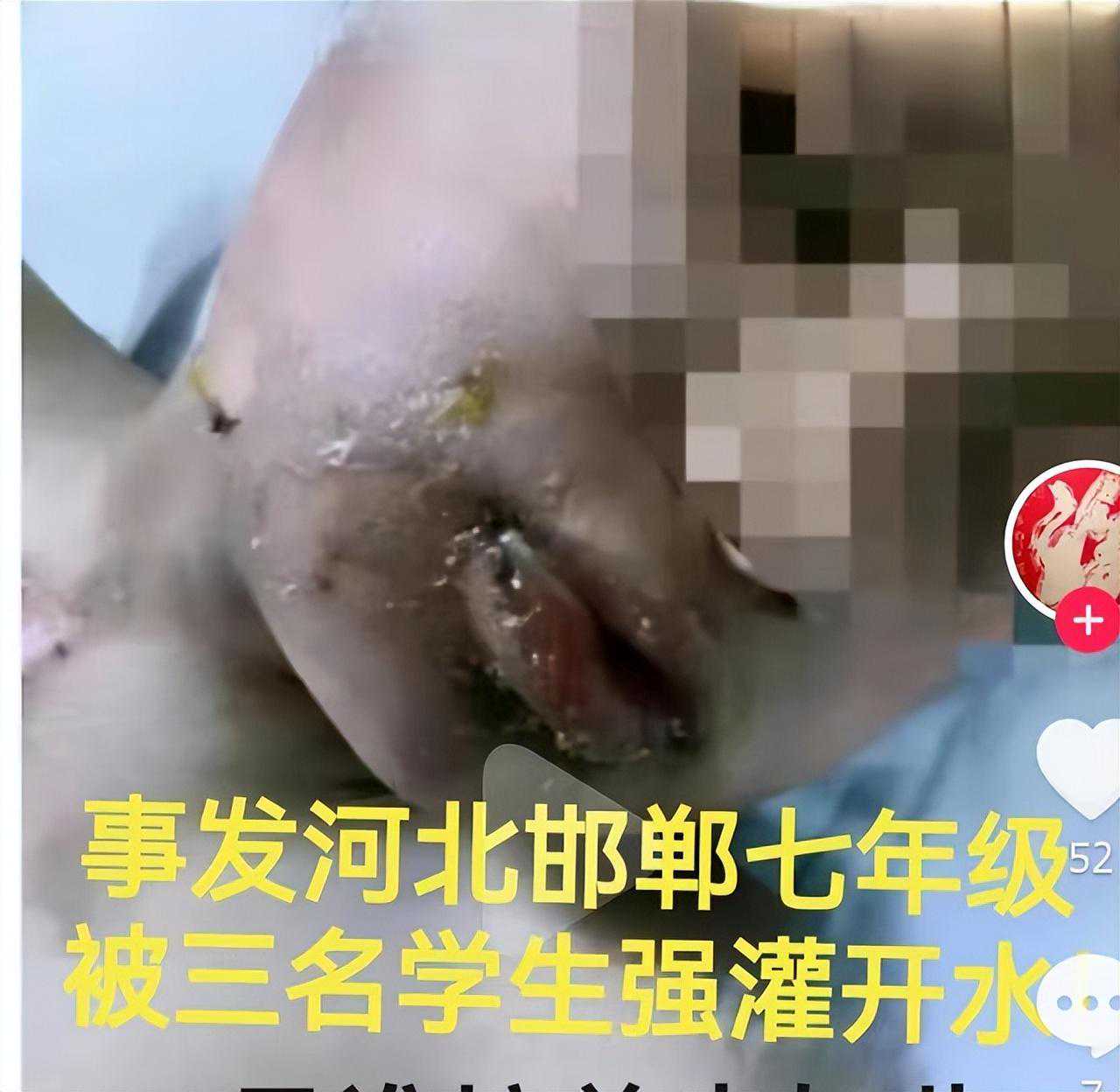 没想到,河北邯郸永年区教体局在通报中居然直接把开水变成了“水”,虽然都是水,但是灌“开水”和灌“水”的区别,大家还是能够明白的。同时,把如此严重的恶意事件定性为同学间的“打闹”,就显得有些离谱。看一看受伤孩子的嘴唇,看一看烫掉的皮肤和大大的水泡,这是“打闹”么。