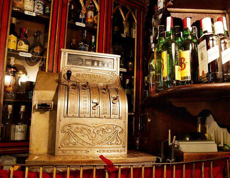 用海明威的话,这里是他吃过的最好的餐厅之一。我不知道文豪判断餐厅的标准是什么,但走进波丁小得有些荒唐的门,立刻就能感到一种不同平常的气场迎面而来。入门一侧的酒吧很有些日子了,架子上放的酒瓶显然有日子了,那台老式的收银机端庄地坐在那里,老板顺手敲几下老式打字机一样的按键,再按了一下按钮,银箱咣当一声弹出来,一切都完美,除了无法刷信用卡。
