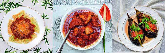如一份烤西红柿,按习惯供大家分食。烤到熟透的西红柿去了皮,却留着顶上的枝叶,一溜四个红红的颜色,用西班牙著名的橄榄油浸润着,装在白瓷碟里端上来,红黄白,衬得色彩分外妖艳。碟子的形状就像反过来的屋瓦,西班牙建筑里最常见的标记元素。西红柿可以用西餐的刀叉来进食,更地道的做法是用手直接拿着烤焦的西红柿把儿送入口,一咬满口汁水,清凉甘甜。