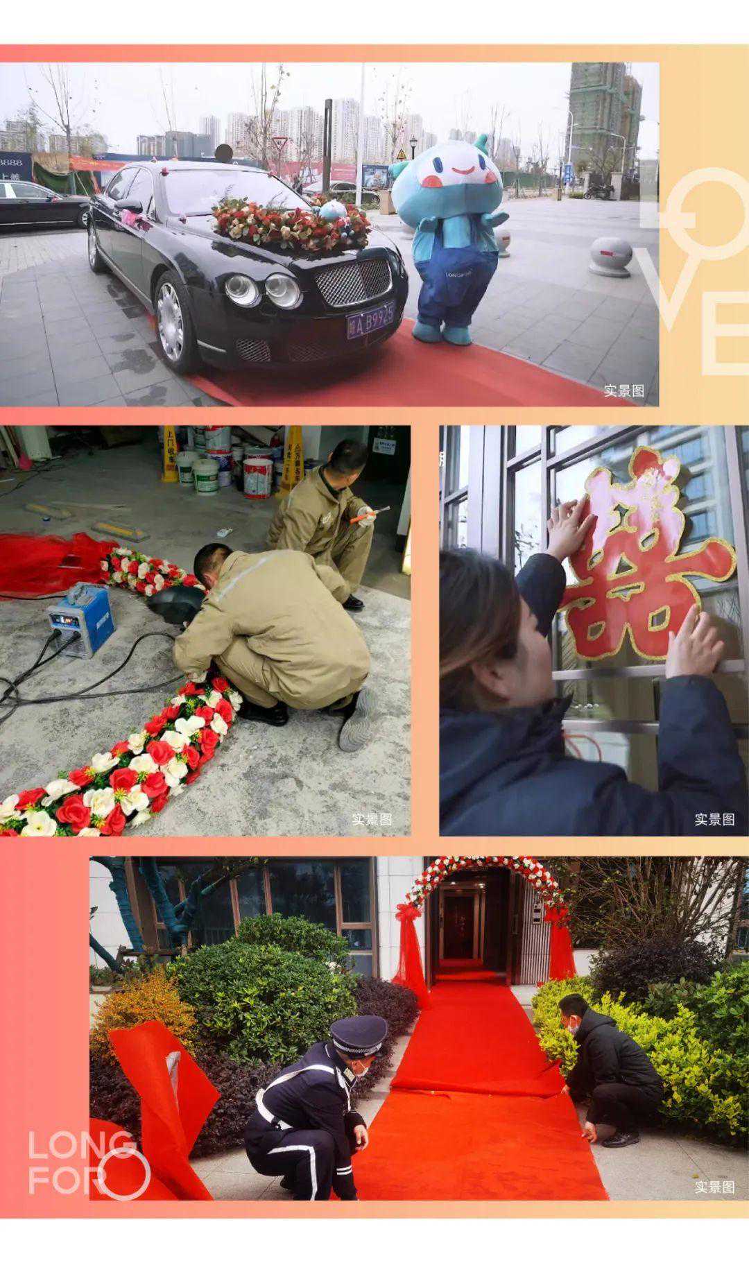 之后的日子,龙湖智创生活团队俨然是职业婚庆策划人,带领物业团队全员参与:从选购婚庆材料,入户大堂布置、工程帮忙接电、安保维护现场秩序、拍摄美美照片