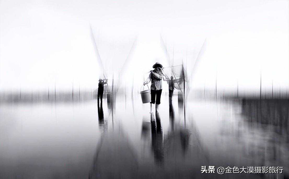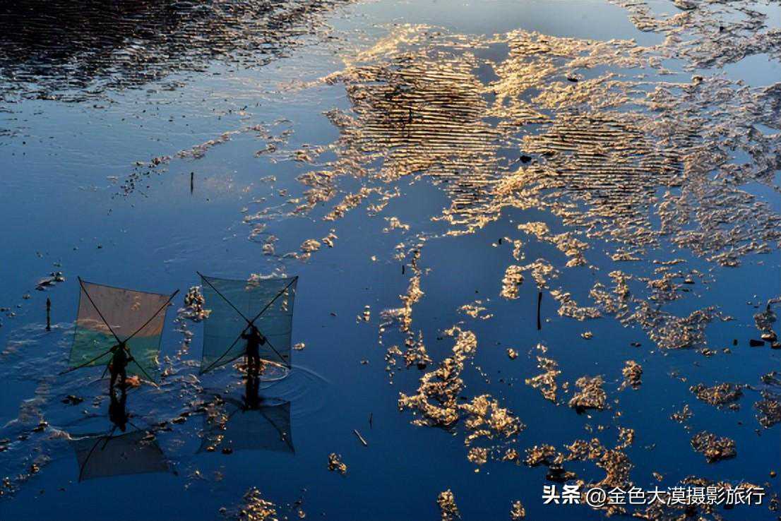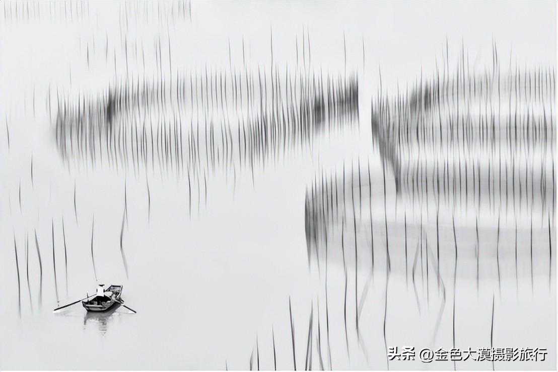下午2点钟出发盐田镇南湾村的滩涂,线条粗犷、硬朗,随着潮起潮落,若隐若现,会出现各种图案,有时特别像甲骨文。而旁边各色围网,原是用于养螃蟹的,现在只留作拍照用,正好相映成景,别有情趣。小木船慢悠悠从中穿过,如梦如幻。不过,就是这样的景观,也成为了商业项目(在线条间穿行的小木船是顾的模特)
