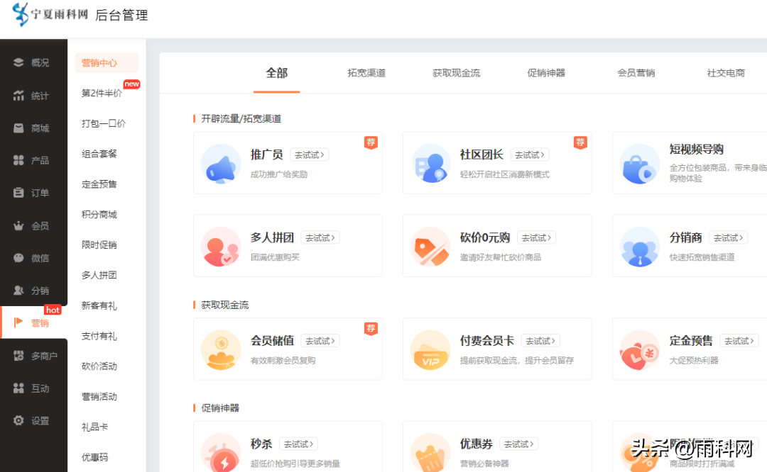 同时营销也利于提升商城气氛,不再枯燥,促进客户多次访问,现成体系开启设置,不用懂专业运营技术也能完成设置,营销与会员结合,引流/转化/留存/复购/裂变/分享等不再烦恼。