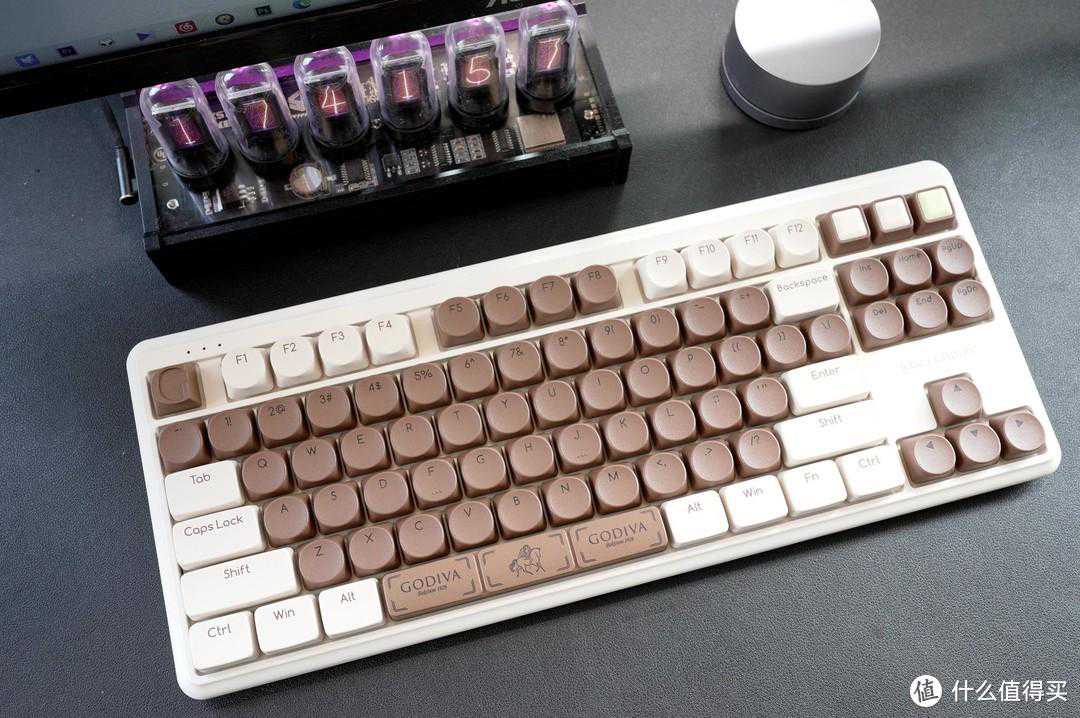 偏爱文艺小清新风格的话,那么可以试试这款机械键盘厂商ikbc和巧克力厂家歌帝梵联合推出的这款独具风格的联名键盘。键盘设计上融了大量godiva的巧克力元素,文艺气息爆棚,设计感十足,特别适合文艺青年。