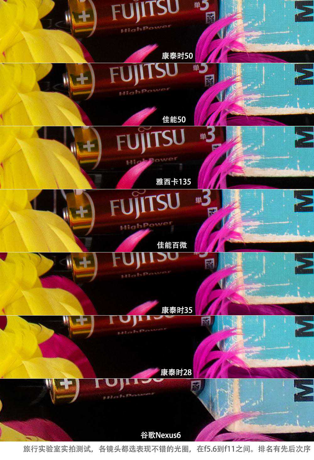 边角对比可以看到排名有了很大变化,这是因为不同镜头在边角差异化会变得更加明显。换个角度就是,部分镜头无法在边角保持和画面中央一致的成像素质,这和感光器件面积较大有关,也和镜头口径较大有关。