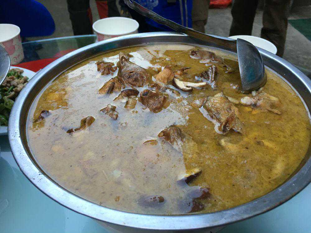 天色渐晚,我们宿在农家。辛苦了一天,当然不能委屈自己,事先就预订好了当地最具特色的吊锅鸡,一进门就热气腾腾地端上了桌。善饮的朋友又要了酒,推杯换盏,在菜香酒香中消除了所有的疲乏。