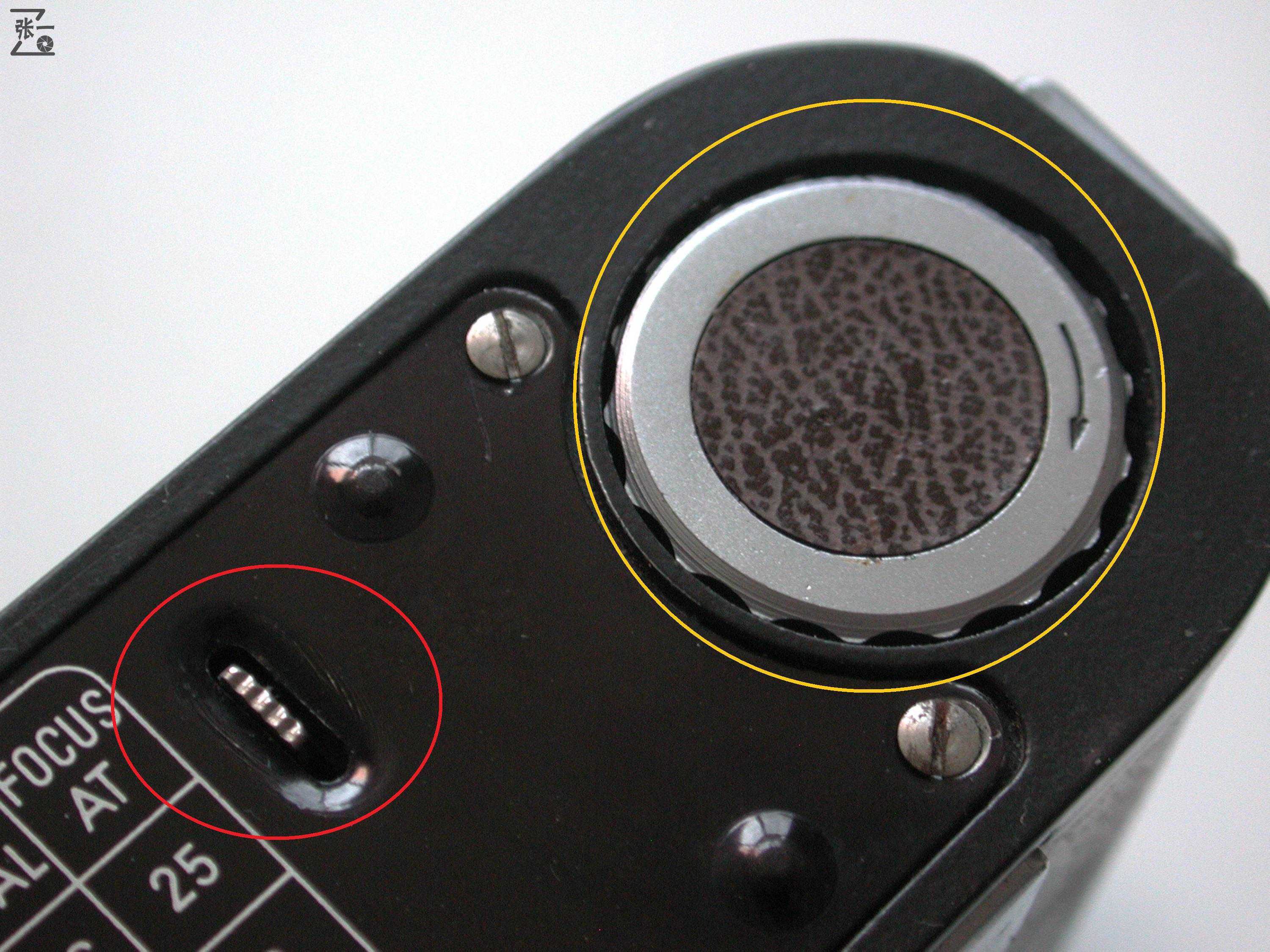 尽管不能黄斑测距对焦,但该机还是可以进行调焦的。只是实现调焦的方式相对与众不同一点儿而已。拨动机顶右侧的对焦齿轮(下图1),该机的镜头并不会移动,相反的是相机片舱内用来承载胶卷的那块金属板(下图2)会进行前后移动,从而达到调焦的目的。下图3和4就是从侧面观测到的、这个金属板与机身之间在调焦至最近距离时与无限远时的缝隙大小。