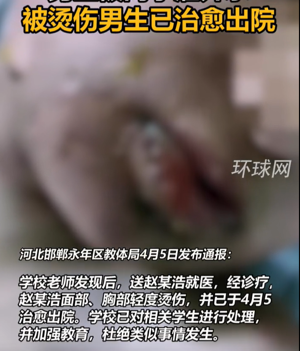 今日下午,河北邯郸永年区教体局通报“初中生被同学灌开水”一事,给出的结果是:被烫伤学生治愈出院。