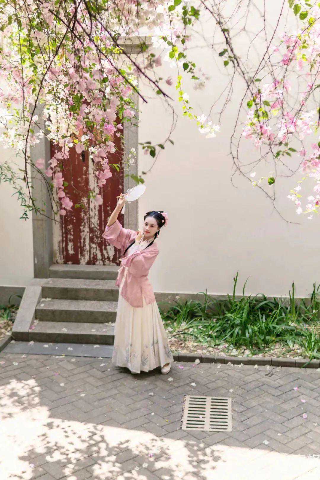 想拍摄古风大片,推荐你去汇芳园,院落内的勒杜鹃正花开满树,红白相间,超级浪漫,像极了那句古诗“春色满园关不住,一枝红杏出墙来”。