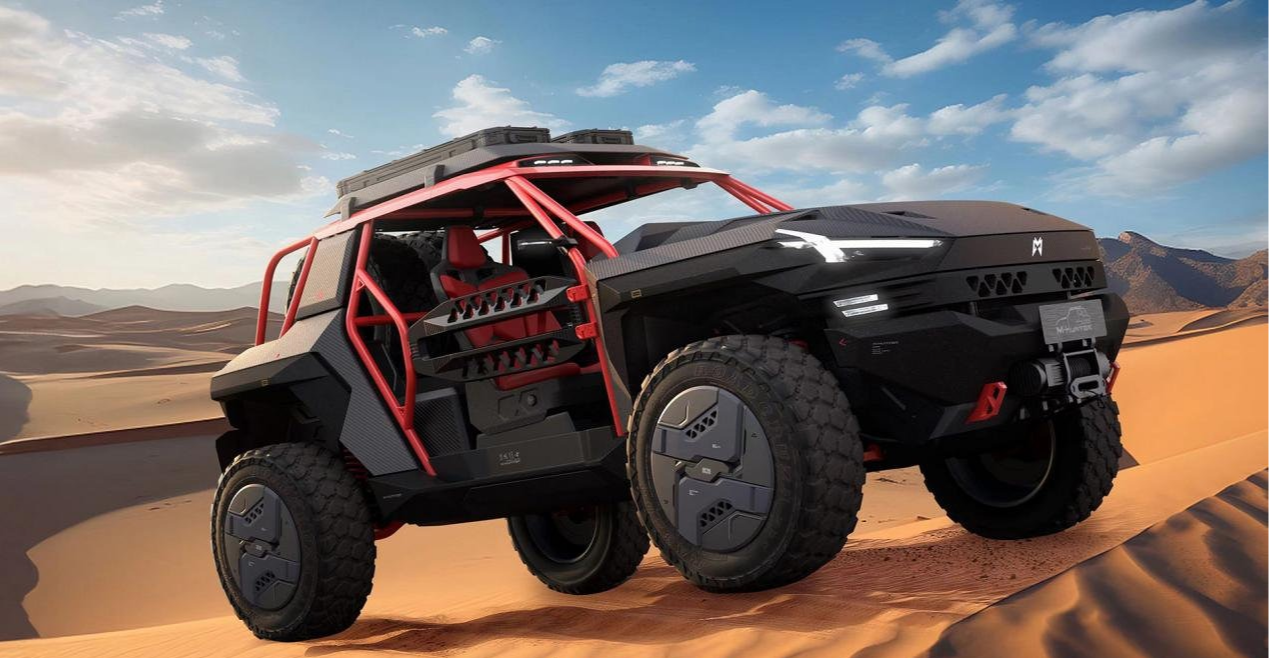 猛士M-HUNTER狩猎者将以极致性能赋予用户一往无前的勇气。其搭载37英寸超大极限越野轮胎和源自军车的底盘升高技术,最小离地间隙达到425mm,可以轻松应对各种复杂路况,征服各种未知挑战;赛车级氮气减震系统的运用,让猛士M-HUNTER狩猎者在极端路况下依然能给到车辆持久坚韧的支撑力;可拆卸的野行门板辅助使车辆能够逢山开路、遇水搭桥,轻松应对各种复杂地形挑战;全车身采用航空级高级碳纤维材质,使车身更加轻量化,在极限驾驶时提供了更强的稳定性和安全性。无论是石林攀岩、大漠豁沙,还是戈壁飞驰、峡谷征服,猛士M-HUNTER狩猎者都能如履平地,展现出真正的超能猛士风范。