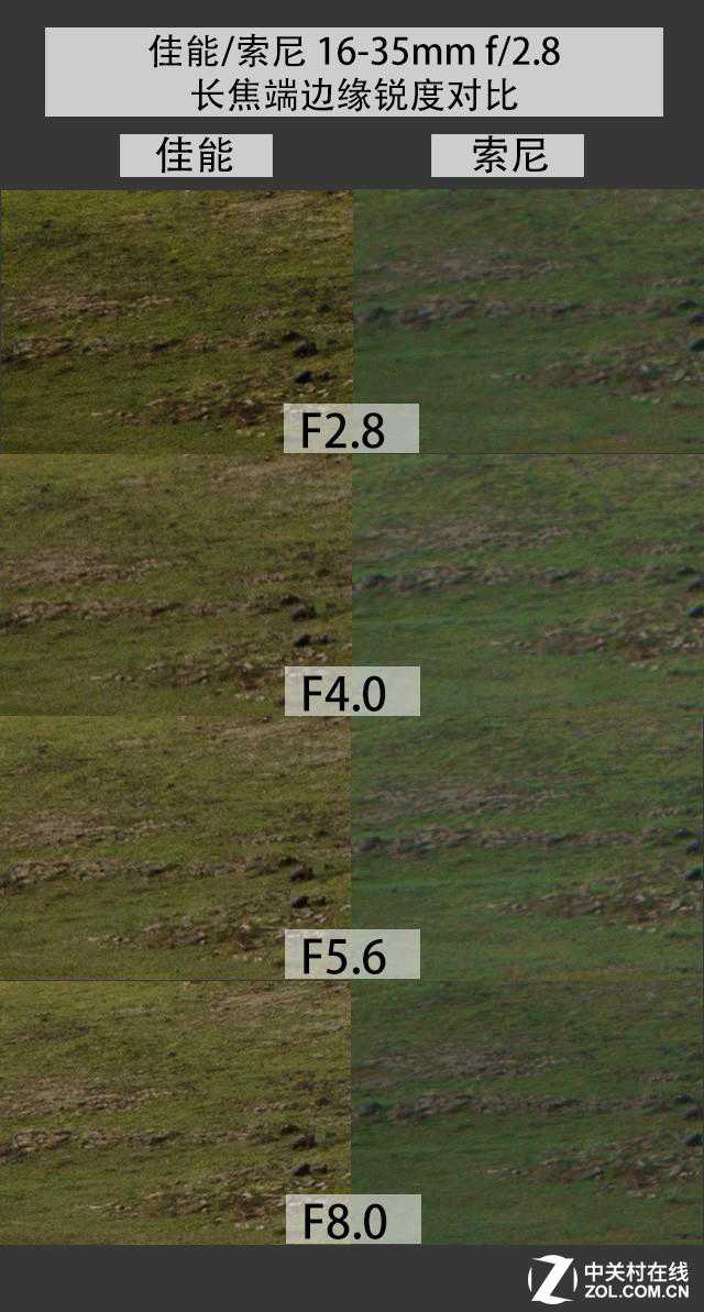 佳能/索尼16-35mmf/2.8长焦端分辨率测试
