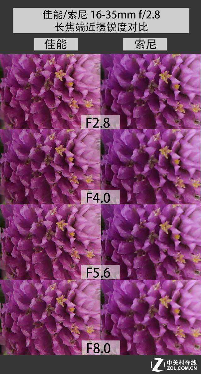 佳能/索尼16-35mmf/2.8长焦端近摄分辨率测试
