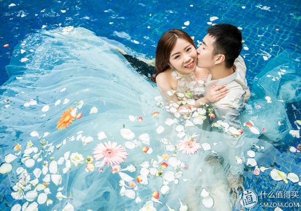 如果你不确定摄影师能不能懂你想要的感觉,把你喜欢的图存下拍之前给他看,这样保险一点。拍照里面的手捧花是单独收费的,300元一束,我因为要拍水下的,再加上一束沙滩的,所以总计是2束,第一套先拍的水下,废话不多说,先上几张拍的婚纱图。