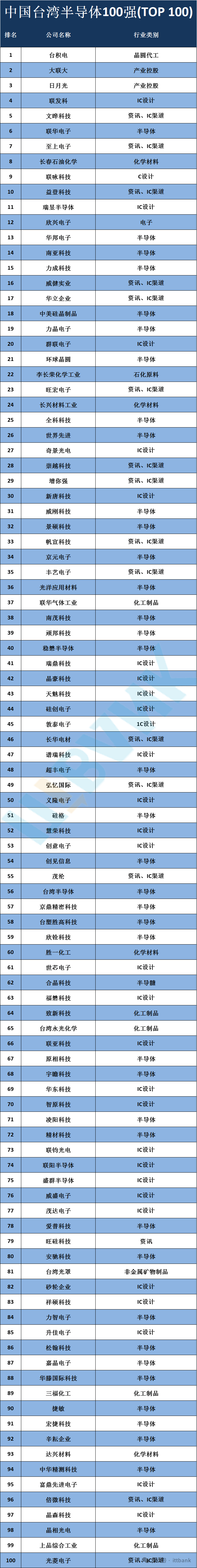 中国台湾部分半导体及面板厂商分布