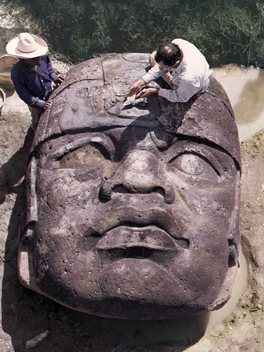 5、1946年,在墨西哥出土的大型玄武岩头像。