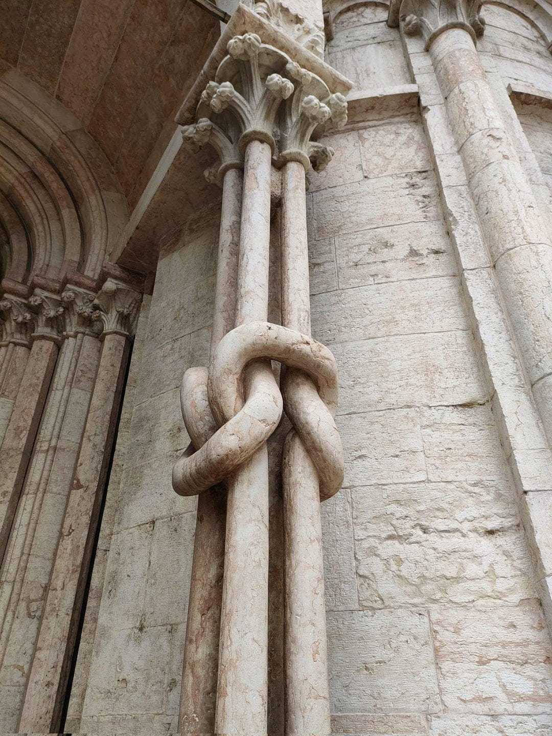 11、公元13世纪,意大利,特伦托主教座堂内的四根交织的大理石柱。