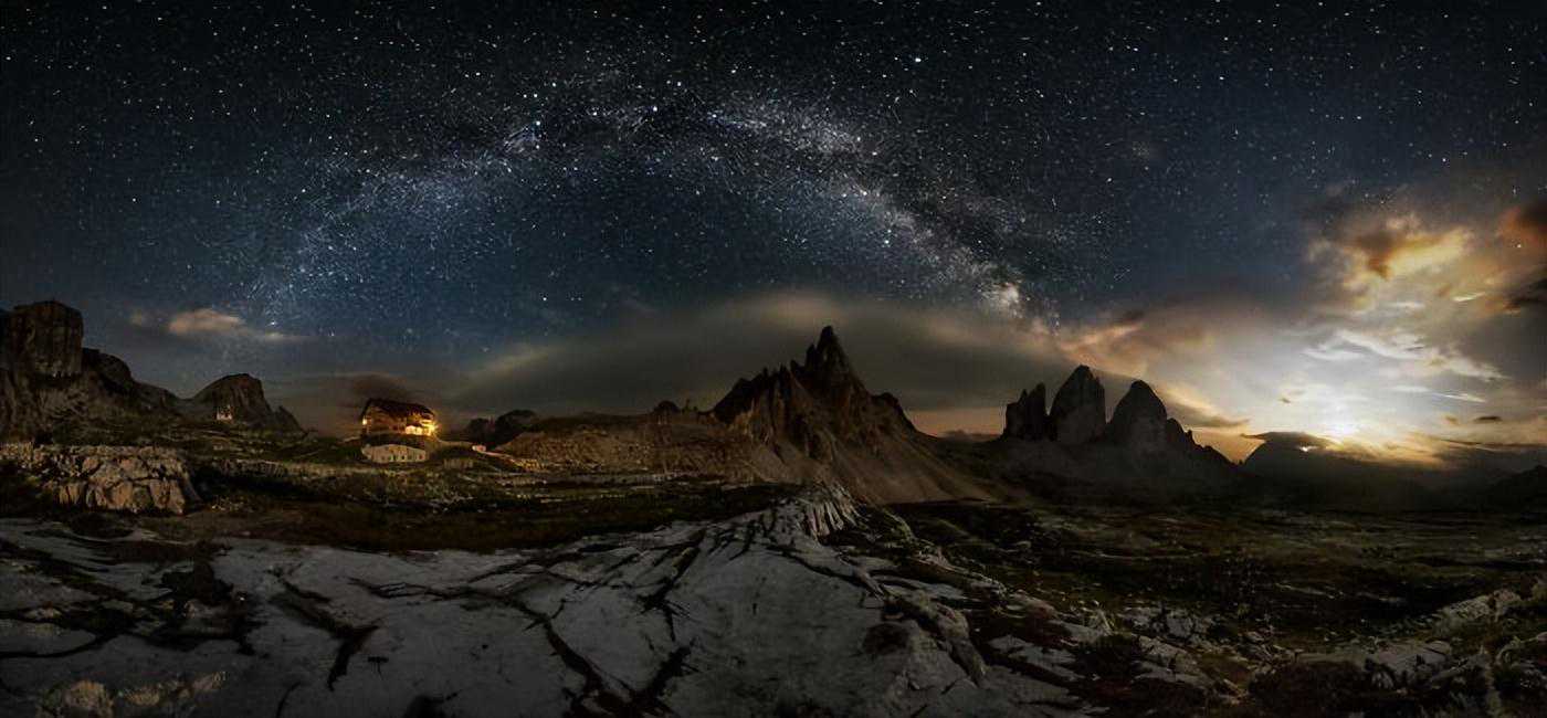 7月的一个晚上,在与一些景观设计师朋友一起的摄影周末,在拉瓦雷多(意大利)的“三峰”(也称为DreiZinnen),以2450米的高度观看月落全景。