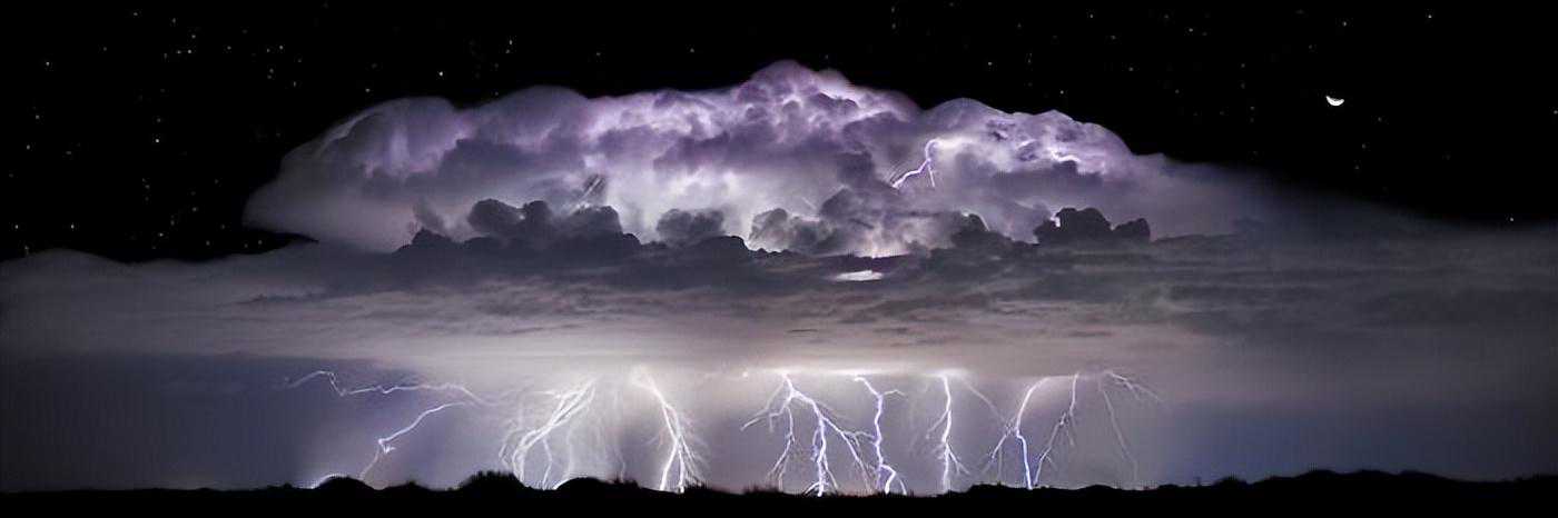 这场风暴并没有那么大,但它用强大的电能和令人难以置信的光弥补了它。这张图片由五次不同的闪电爆发叠加而成。彼此分层。大约一个小时后,风暴失去了它的热情。