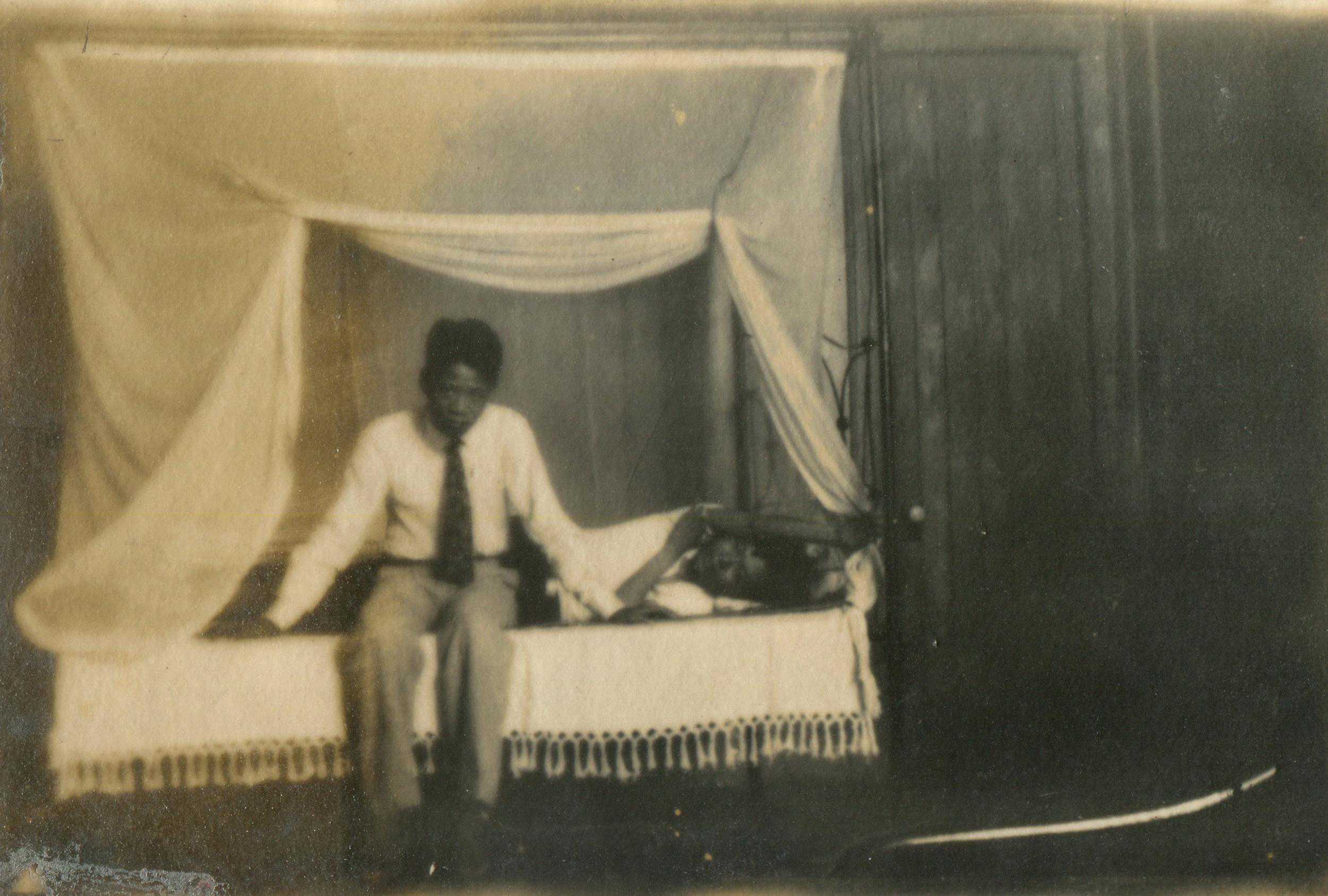 光阴荏苒,洪绶成家立业,1927年,他们在福州烟台山的“宜园”留下了几张照片。其中一张,老二老三老四三姐弟坐在台阶上,或许是意识到这是一张合影,几人各自摆了个姿势,其中的正式感与另一张躺在床榻上兄弟两人的随性模样形成了对比。看起来,与四哥在一起,五弟显得很放松。