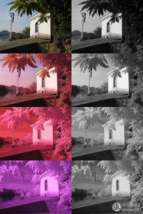 ▼IR680滤镜,自定义白平衡,所有叶子都成粉红色了。
