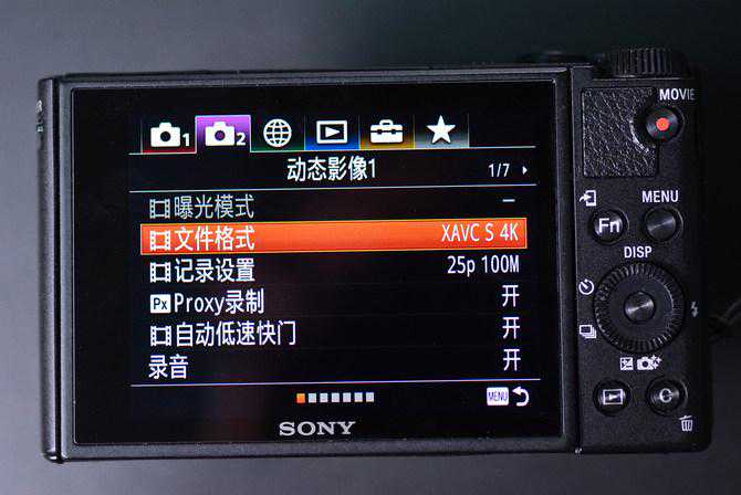 首先从外观上来说,正面部分的设计依旧保持着索尼一贯的简练风格,右上角醒目的“SONY”产品LOGO、以及“ZEISS”和“4K”等标志,都直观的能够体现出此产品的一些突出特性。机身右侧设计了防滑手柄,增加握持的舒适感。该机三围102.0mm×58.1mm×35.5mm,体积大小要小于索尼知名的黑卡RX100系列相机。