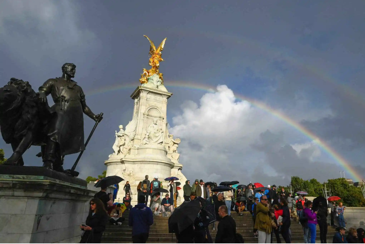 在此期间,令人惊讶的是,白金汉宫的上空,竟然出现了“雨后彩虹”,不少英国民众都认为,这是“上天的回应”,认为这是上帝在给去世的女王献礼。