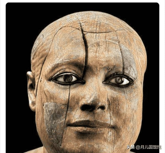 在埃及的马斯塔巴发现的木制雕像,眼睛镶有铜和水钻,它大约有4500年的历史。