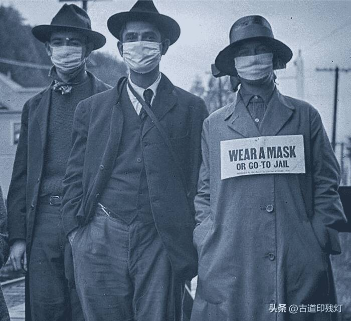 1918年,在加利福尼亚第二波西班牙流感期间,一群人戴着口罩合影留念