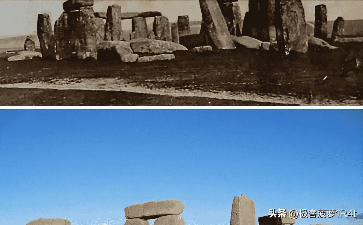 1877年的巨石阵VS现在的巨石阵,原来巨石阵并不是一开始就是这样的,而是经过了人工修复的。