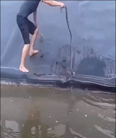 这人有些倒霉,刚刚躲开一条蛇,更大的一条蛇从上面滑了下来。