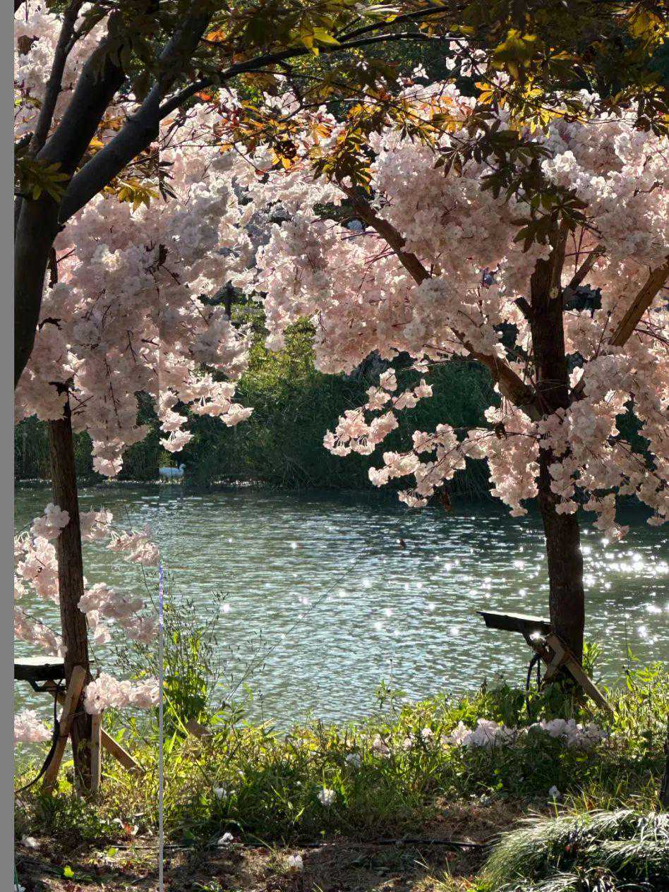 e人真的很喜欢拍照完美的阳光清澈的湖泊樱粉的花朵太完美了