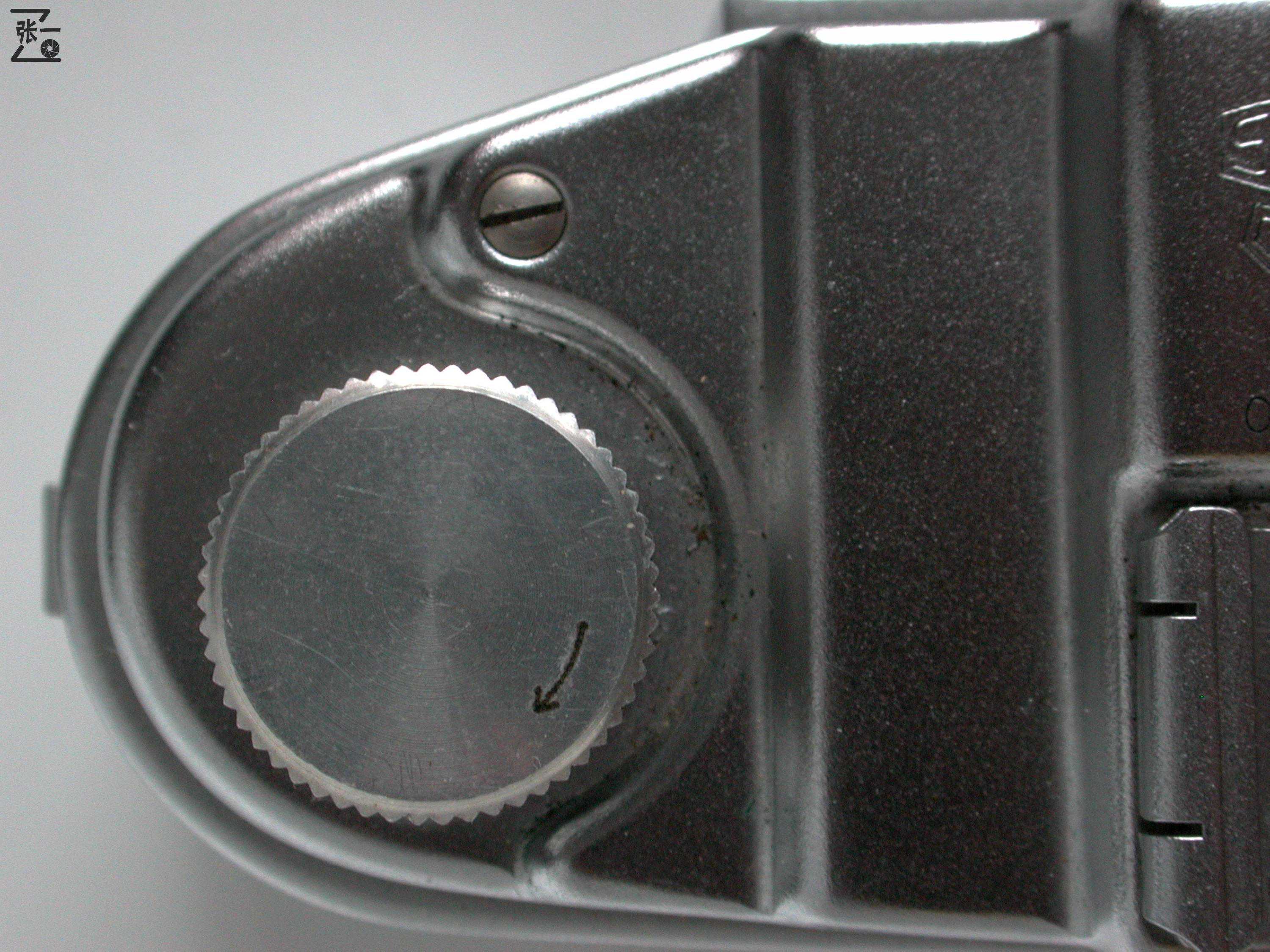因为向上提拉后,这个过片旋钮会自动缩回,所以为了拍照方便,不得不用了一个额外的大螺丝将其卡在提拉的位置。这种通过向上提拉来释放倒片锁定的方式,在我经眼过的数百台相机中,好像这款Finetta88是唯一采用了这种方式的。