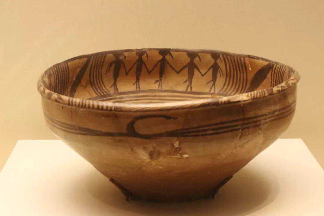 ▲出土于青海大通县的马家窑文化舞蹈纹彩陶盆。图/视觉中国