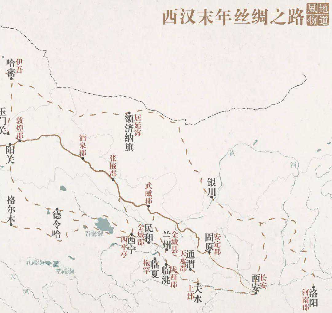 青海在很长一段时间内,都是作为中央王朝的边地存在。西宁、海晏等地名都明显带有统治者对边疆稳定的期许。边境常常伴随着不同文明、政权、民族的接触,因此青海也是多条古道穿过的地方。