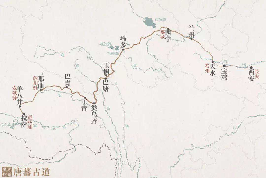 ▲唐蕃古道,这条古道促进了汉藏友好。它延伸出的蕃竺古道也是中国与印度、尼泊尔的国际交流史的见证者。(红色字为古地名)制图/Paprika