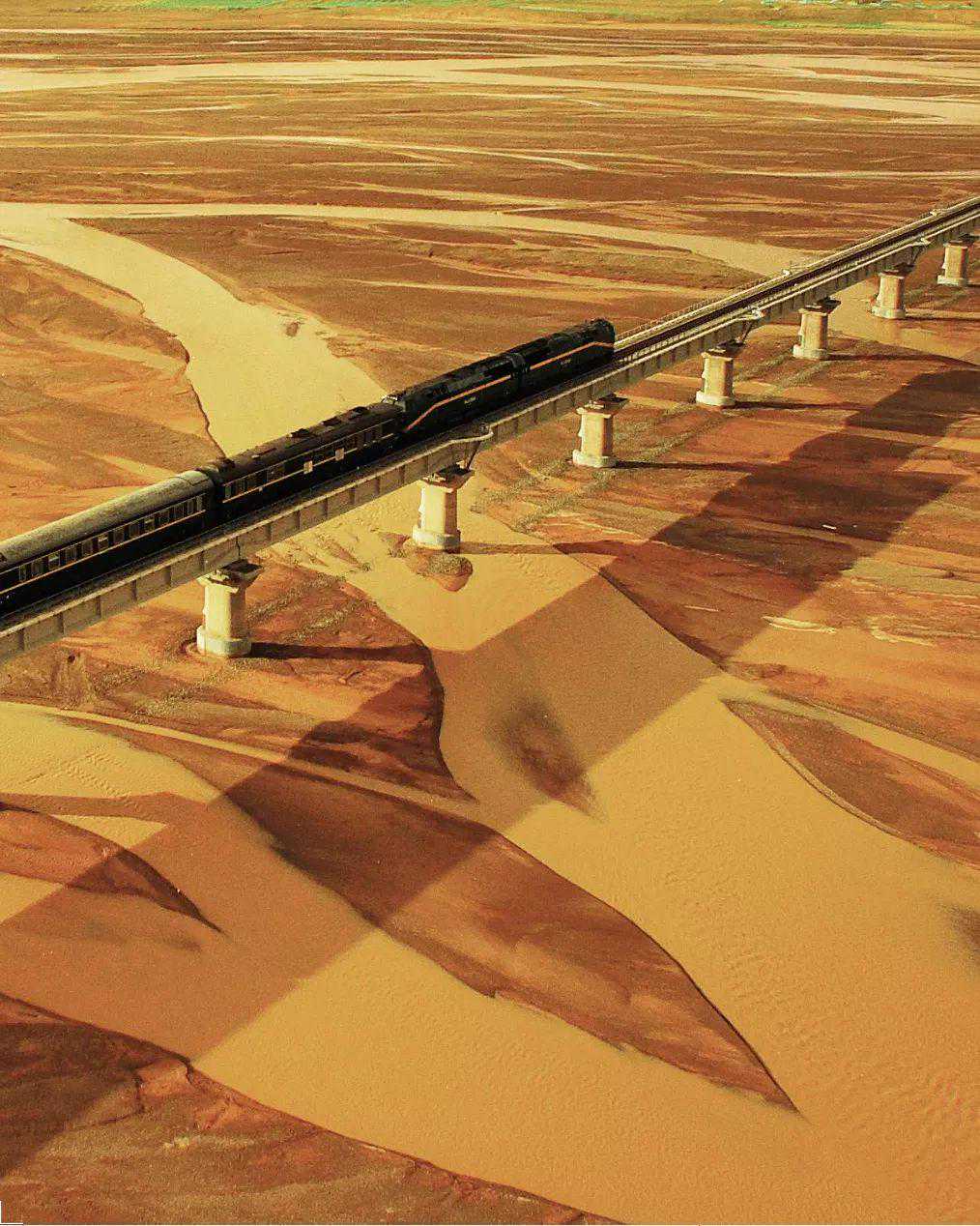 ▲雪山下的青藏铁路。图/视觉中国