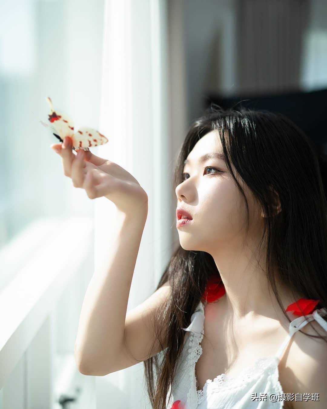 如果在室内拍摄人像时遇到光线不足的问题,可以利用窗口的柔和光线来补光。让人物在窗户附近,让阳光从侧面或正面照在身上,这样既能获得自然的光线效果,又能营造出浪漫的氛围。图8和图9,都是利用窗口补光拍摄的。图8在窗口补光的基础之上,还用塑料袋遮挡镜头,形成了右下角的虚化,这些小技巧,你都可以用起来!