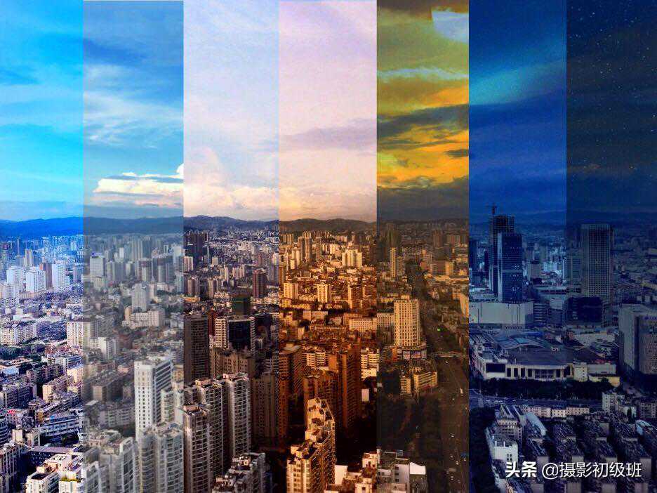 总结:步骤不难,第一换天空,营造出不同时段的画面、第二平均等分裁剪不同时段的画面、三是叠加不同时段的画面。