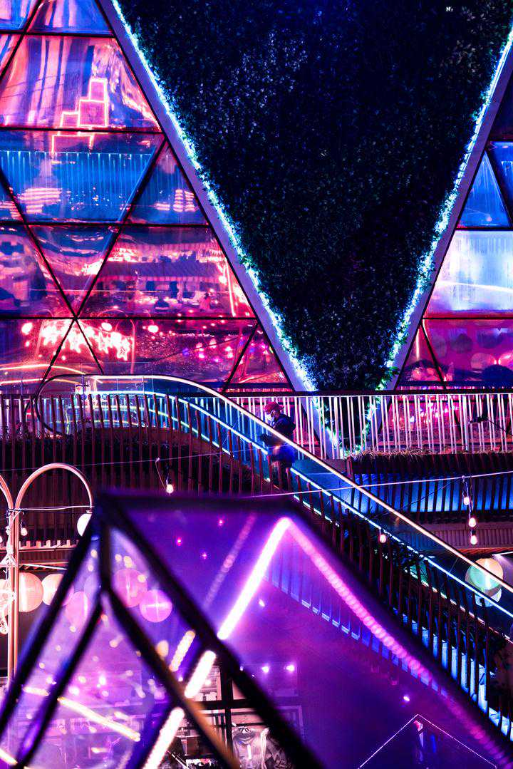 25小时商街绿色生态、场景式购物中心已经成为了如今购物中心设计的潮流趋势之一,而成都鹭洲里商业街正是在这样的趋势下应运而生。走在这里,会感受到一种未来的气息。这是摄影师镜头里夜晚的鹭洲里,可以看到,这里的装饰非常地前卫,有一种赛博朋克的感觉。