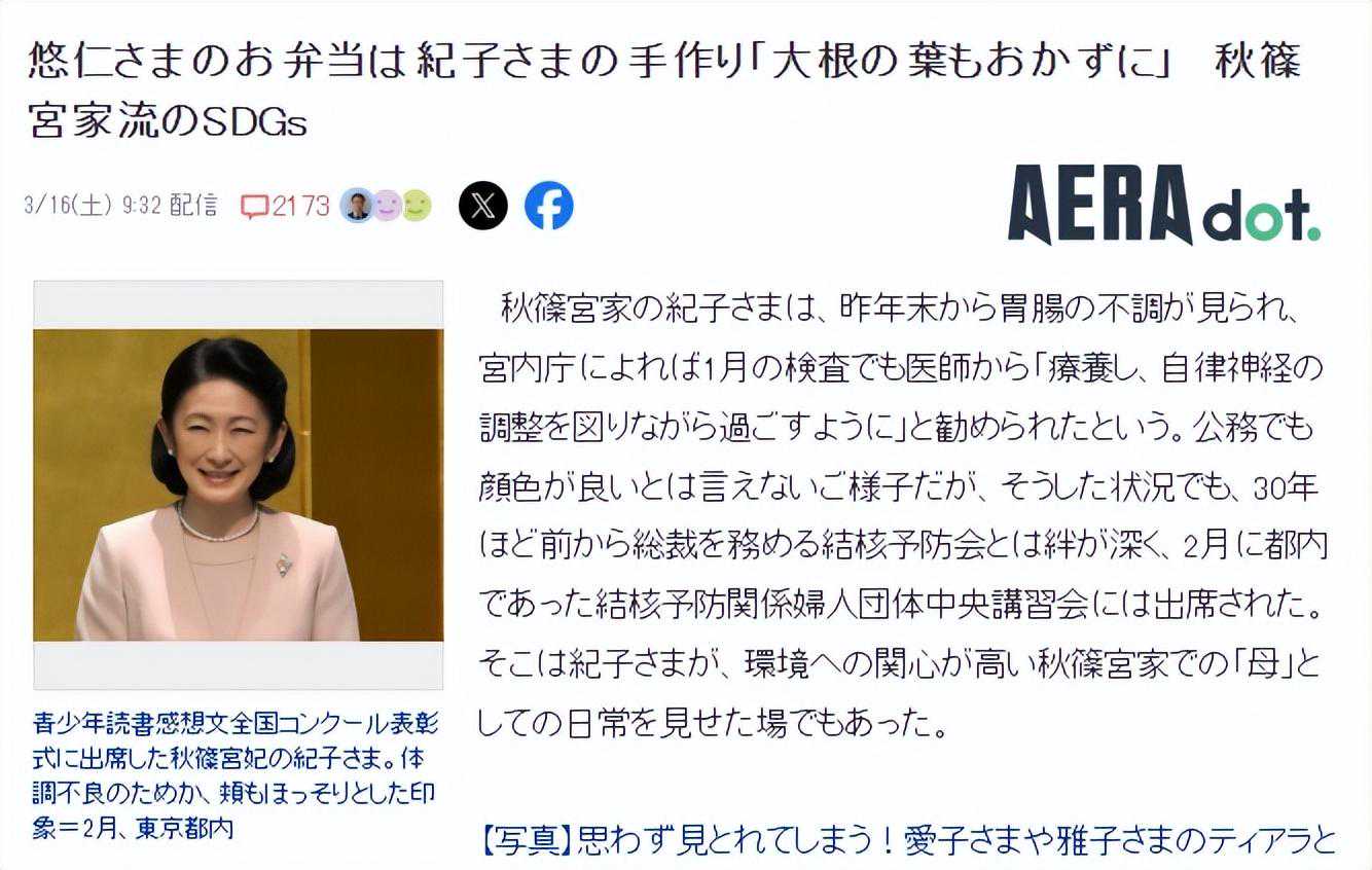 这次起因是日本宫内厅3月16日发布的一篇关于秋筱宫一家节俭生活的文章。
