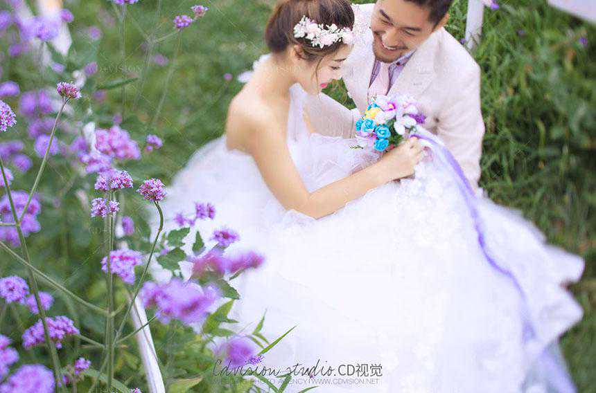 在众多的小清新系婚纱照风格中,花海是很多新人所青睐的拍摄场景,下面就来欣赏一组北京婚纱摄影-CD视觉摄影唯美花海外景婚纱照样片吧。