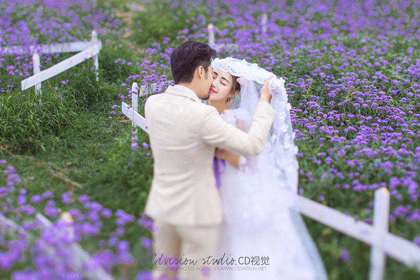 根据不同的季节,不同的花期,CD视觉摄影蓝调婚纱摄影基地一年之中陆续绽放不同的薰衣草花海供于婚纱摄影的拍摄。百种花丛、植物,颜色丰富,层次错落,拍摄元素多样,自然景色在紫色薰衣草花海中拍摄一套唯美的婚纱照,在花海中听着鸟语花香的歌谣,看着花海里一幅幅浪漫绚丽的画卷,身着婚纱,踩着我们留下的一串轻浅的印记,闻着风儿传来的吟吟细语,释放自己,尽情陶醉于花海绚丽和灿烂吧!让我们的浪漫花海婚纱照,从这里幸福上演.
