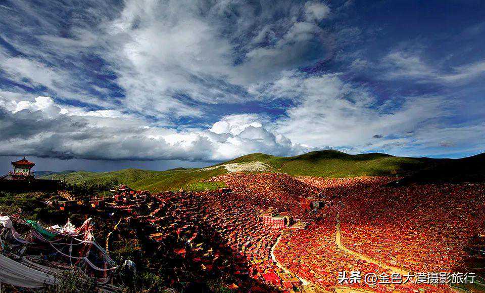 是全世界最大的佛学院,漫山遍野的红房子、恢宏的灯火令人震撼!