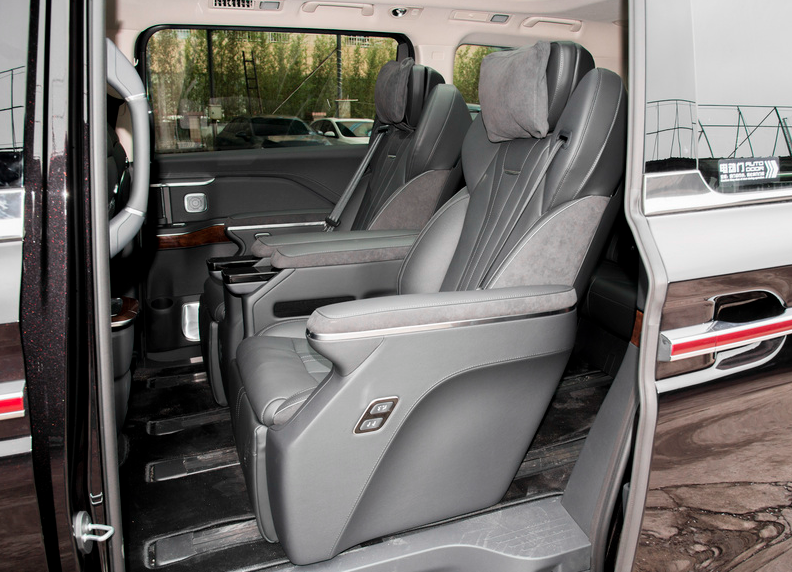 全系提供的是2+2+3的7座布局,标配真皮座椅和前排座椅电动调节/加热/记忆功能。第二排为2个豪华独立座椅,豪华版和旗舰版提供第二排座椅加热、通风、按摩、腿托功能,并且提供后排小桌板、后排隐私玻璃,可以变身为移动的办公室。