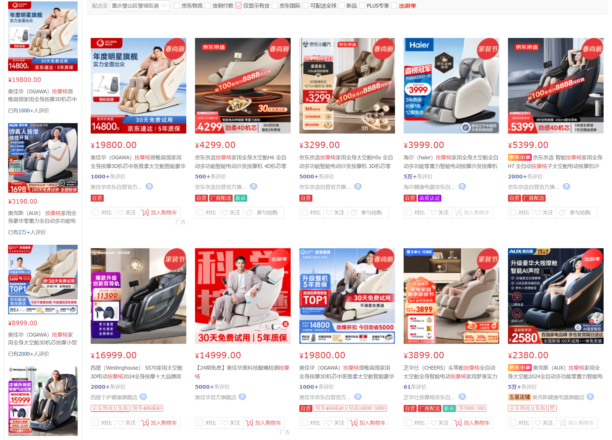 奥佳华是中国按摩椅行业的领军品牌,稳稳的龙头老大,专注按摩领域已经有28年了,拥有自己的研发中心和生产基地,拥有1400多项技术专利,畅销国家20+个,全球门店1500+家,而且它还是中国按摩器具行业国家标准主要制定者,经过了中医智能推拿按摩健康(中国)研究院专业认证。奥佳华的按摩椅产品,从内部零部件到外部面料,均选用优质材料,而且智能化也和外面的小品牌不可同日而语,它的体验也自然是非常好的。
